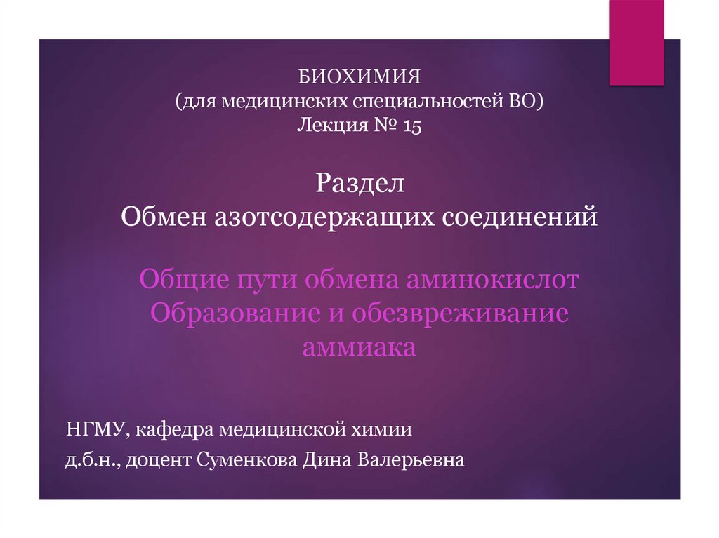 Обмен азотсодержащих соединений. Образование и обезвреживание аммиака