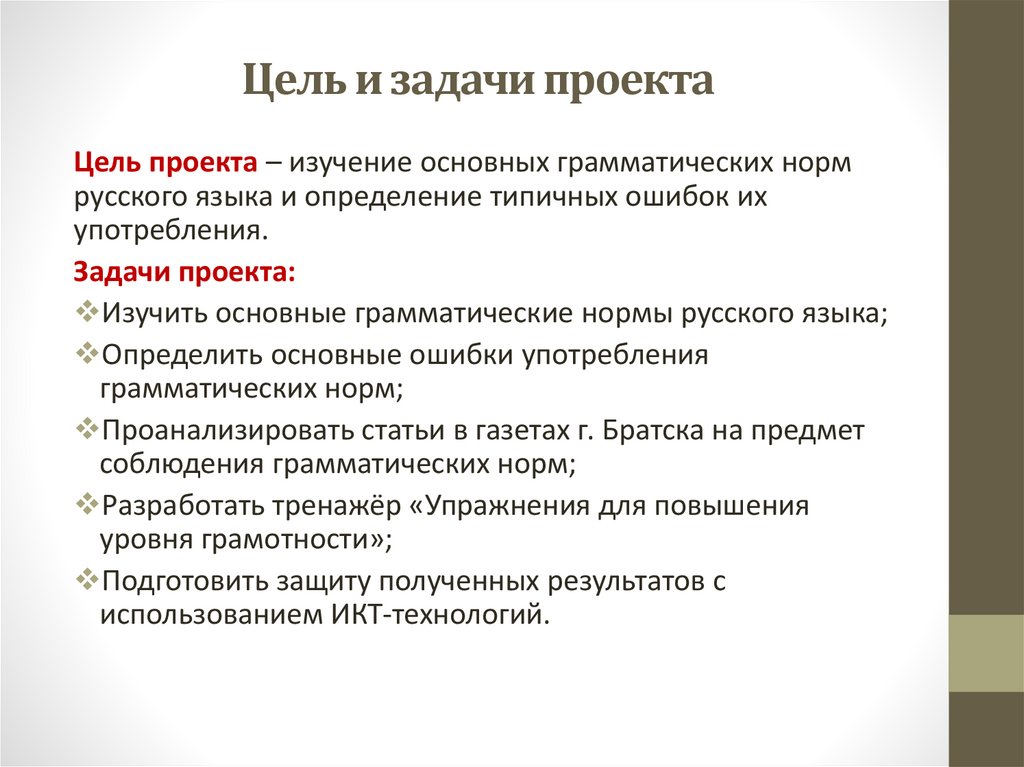 Цель и задачи проектаЦель проекта – изучение основных грамматических норм