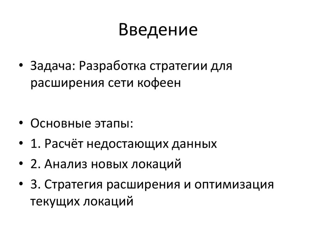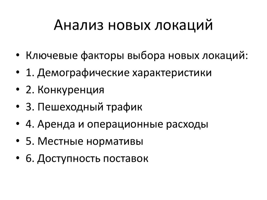 Анализ новых локаций• Ключевые факторы выбора новых локаций:
