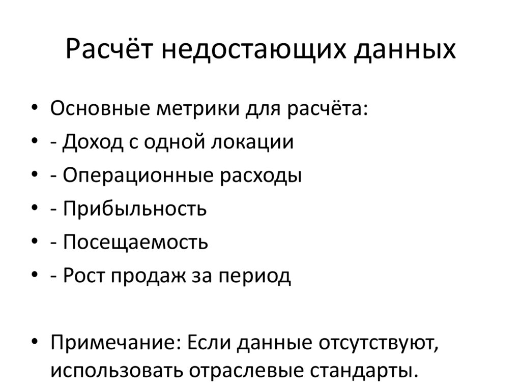 Расчёт недостающих данных• Основные метрики для расчёта: