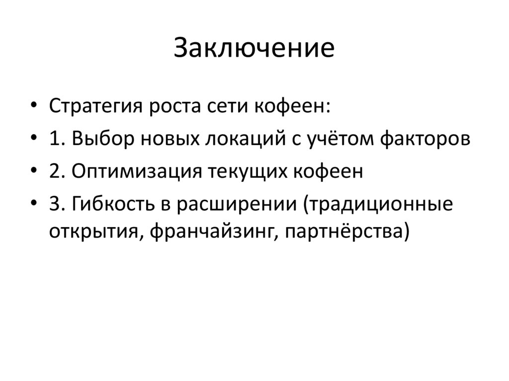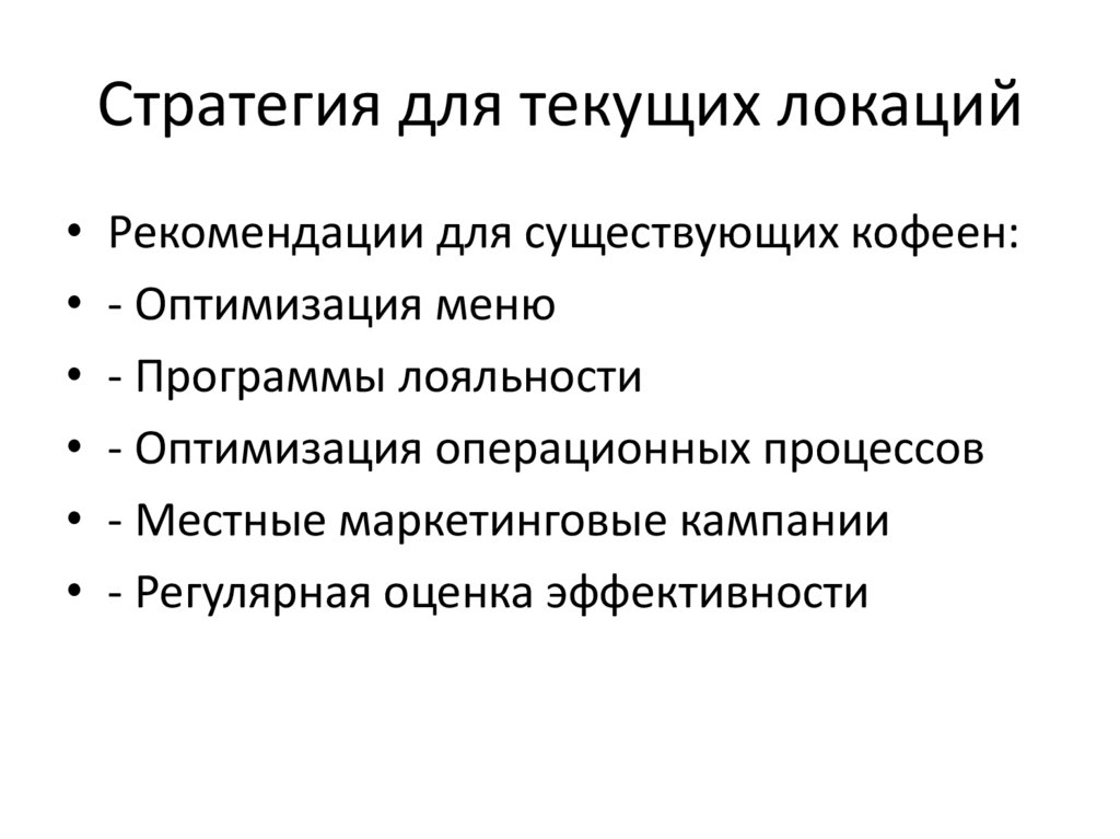 Стратегия для текущих локаций• Рекомендации для существующих кофеен: