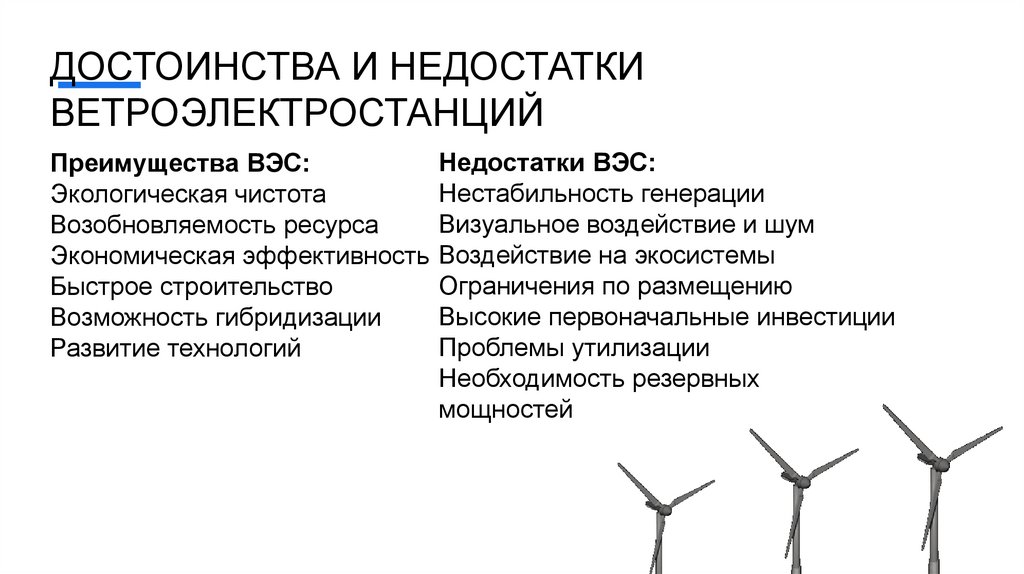 ДОСТОИНСТВА И НЕДОСТАТКИВЕТРОЭЛЕКТРОСТАНЦИЙ