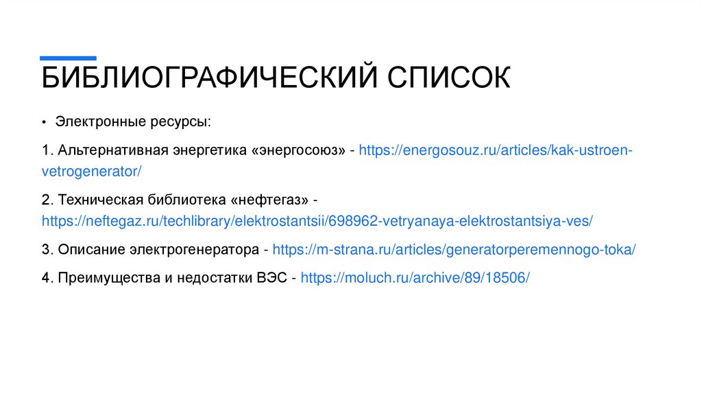 2. Техническая библиотека «нефтегаз» https://neftegaz.ru/techlibrary/elektrostantsii/698962-vetryanaya-elektrostantsiya-ves/