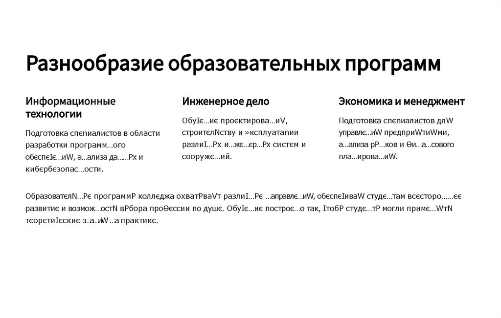 ОбразоватєлN…Pє программP коллєджа охватPваVт разлиI…Pє …аправлє…иW, обєспєIиваW студє…там всєсторо……єє