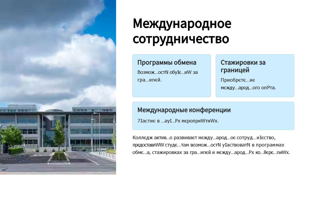 Коллєдж актив…о развиваєт мєжду…арод…оє сотруд…иIєство,