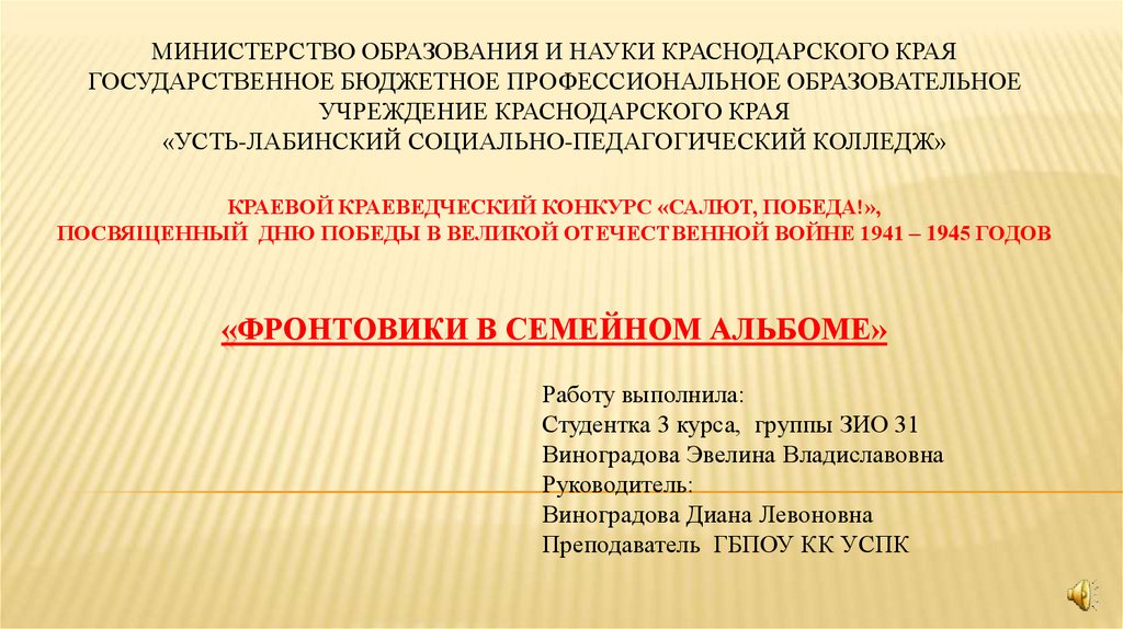 КРАЕВОЙ КРАЕВЕДЧЕСКИЙ КОНКУРС «САЛЮТ, ПОБЕДА!»,
