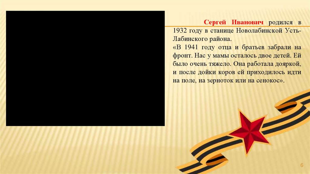 Сергей Иванович родился в1932 году в станице Новолабинской УстьЛабинского района.
