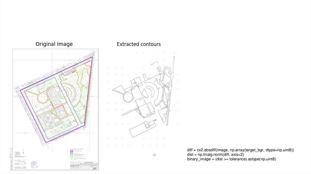 Шаг 1: извлечение контуровdiff = cv2.absdiff(image, np.array(target_bgr, dtype=np.uint8))