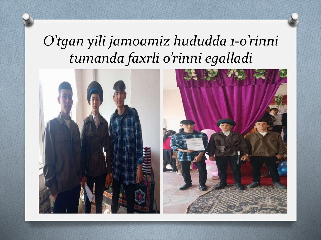 O’tgan yili jamoamiz hududda 1-o’rinnitumanda faxrli o’rinni egalladi