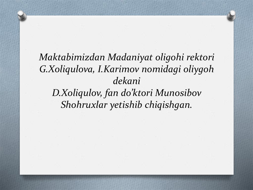 Maktabimizdan Madaniyat oligohi rektoriG.Xoliqulova, I.Karimov nomidagi oliygoh