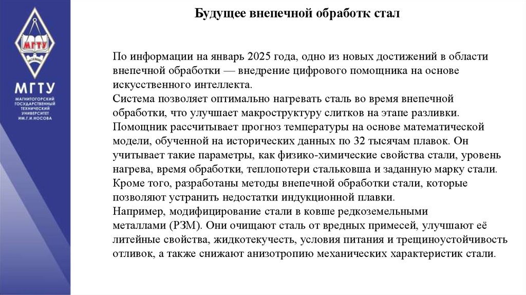 и химии процессов внепечной обработки, что может привести