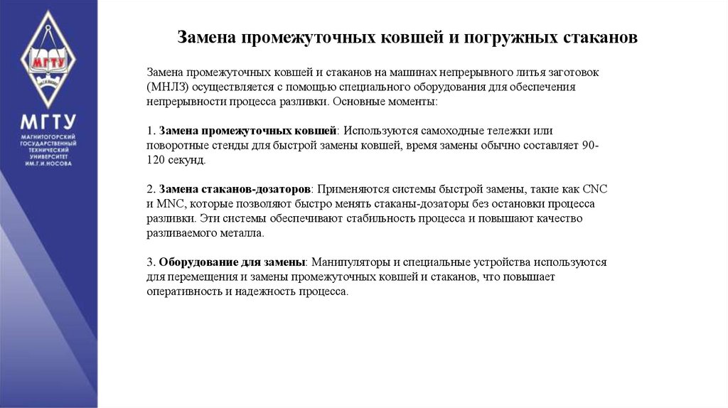 Замена промежуточных ковшей и погружных стакановЗамена промежуточных ковшей и стаканов на машинах непрерывного литья заготовок