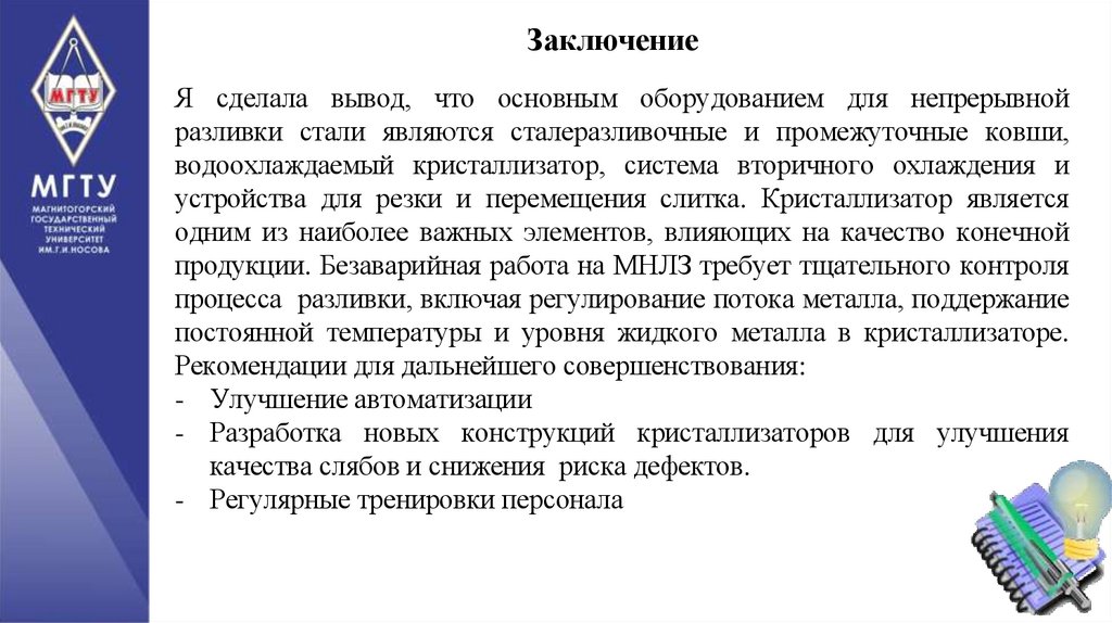 - Разработка новых конструкций кристаллизаторов для улучшения