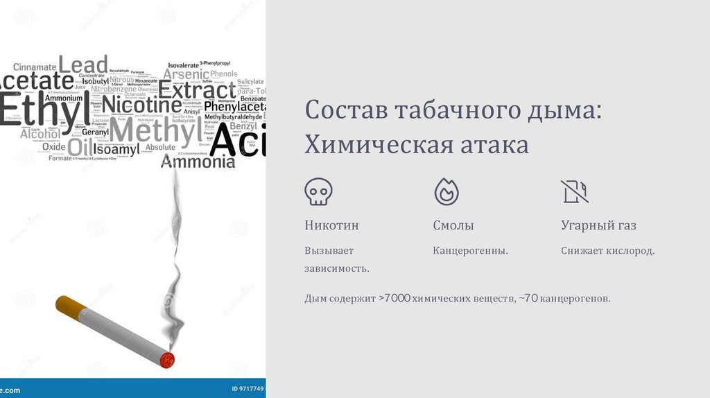 Состав табачного дыма:Химическая атака