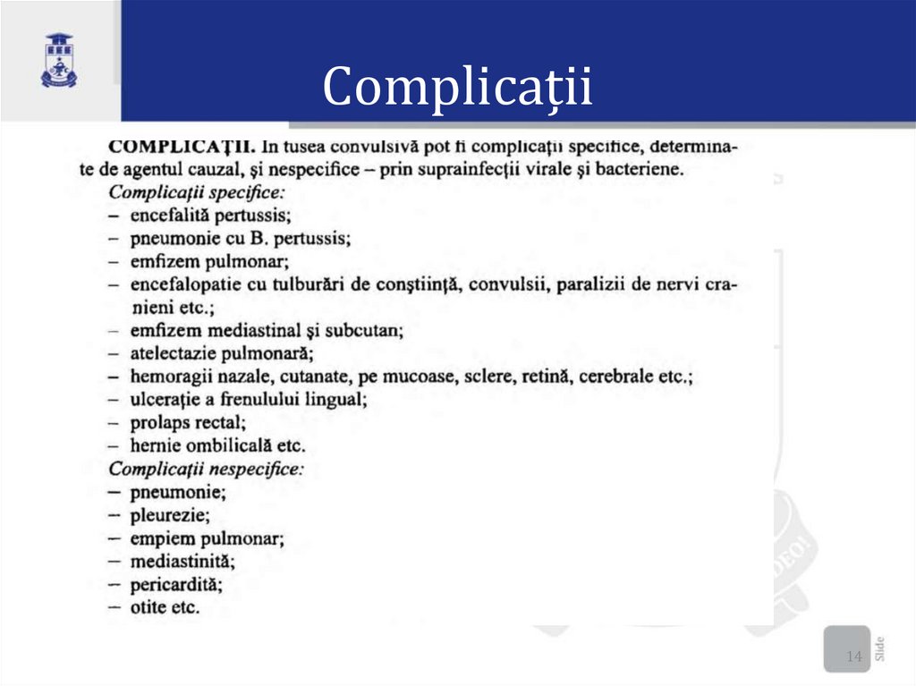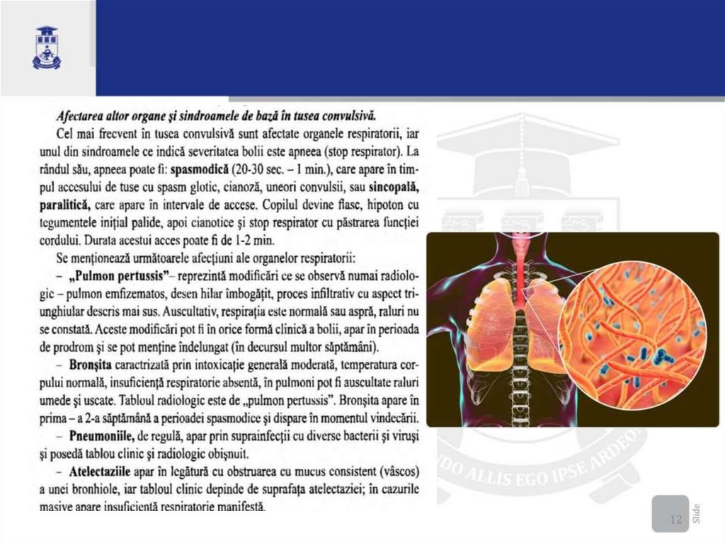 • Sechele:bronșiectazii,bronșite și pneumonii
