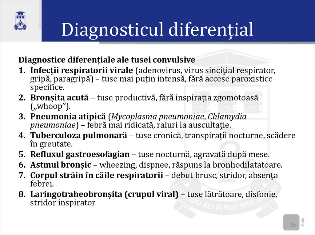 Diagnostic diferențial:Tusea convulsivă (Pertussis)
