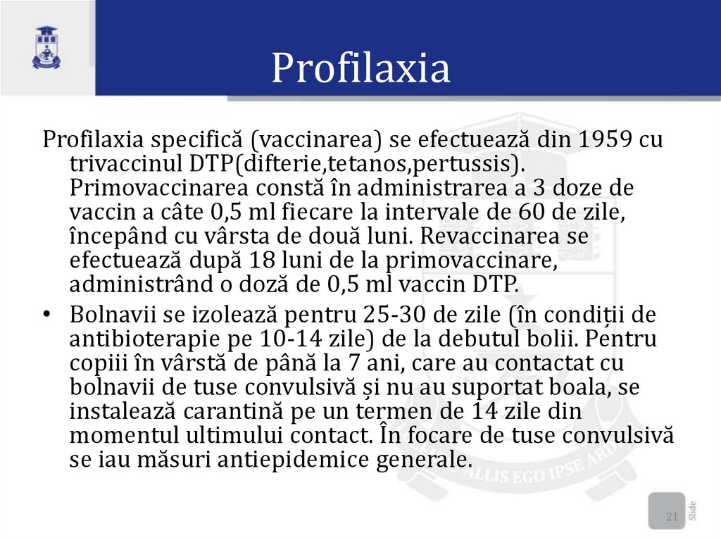 ProfilaxiaProfilaxia specifică (vaccinarea) se efectuează din 1959 cu