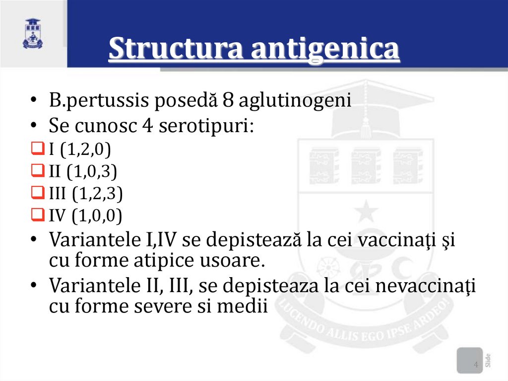 Structura antigenica• B.pertussis posedă 8 aglutinogeni