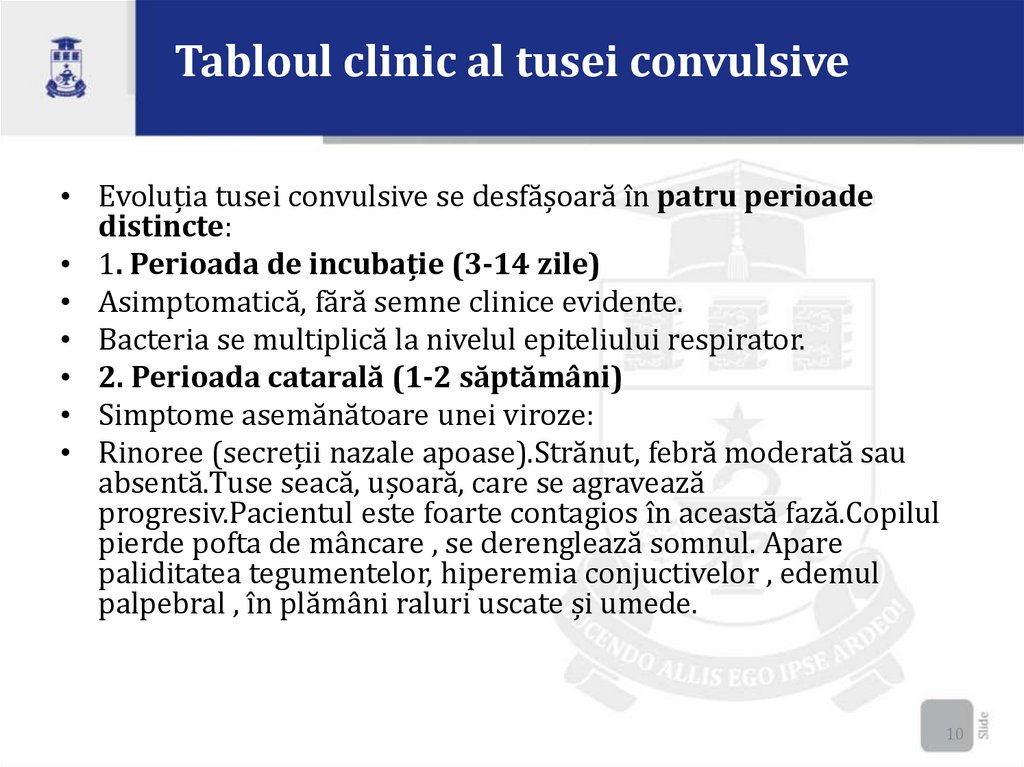 În urmă cu aproximativ 10 zile, copilul a început să prezinte o tuse ușoară, care a evoluat treptat într-o tuse severă,