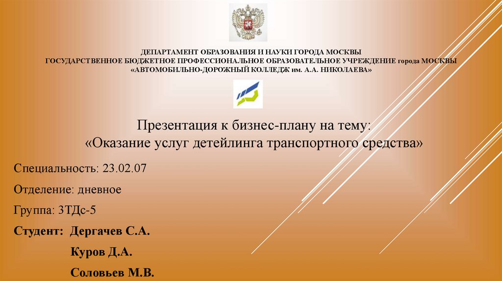Описание предприятияДетейлинг - это комплекс операций по уходу за автомобилем с использованием специального