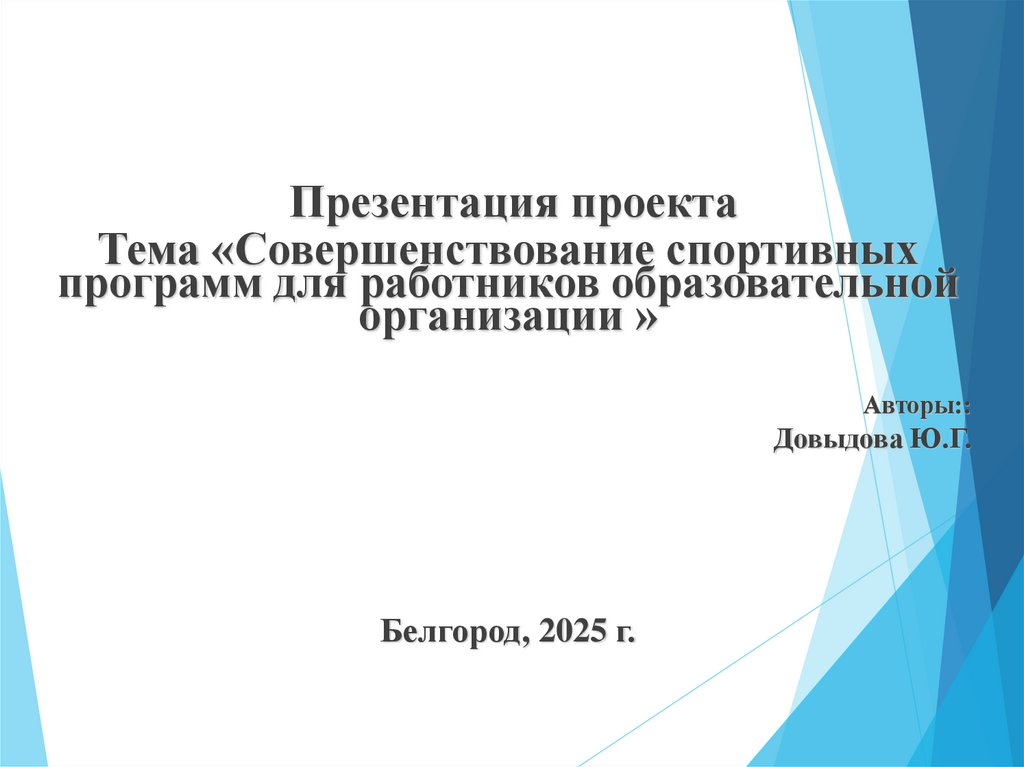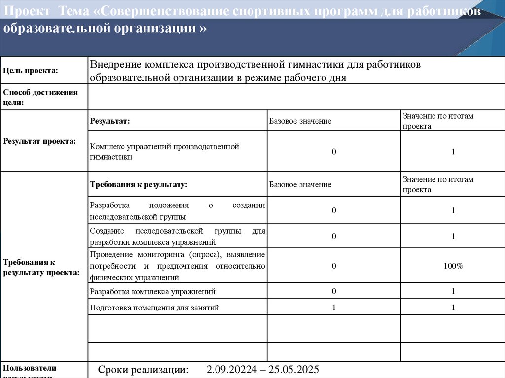 Проект Тема «Совершенствование спортивных программ для работниковобразовательной организации »