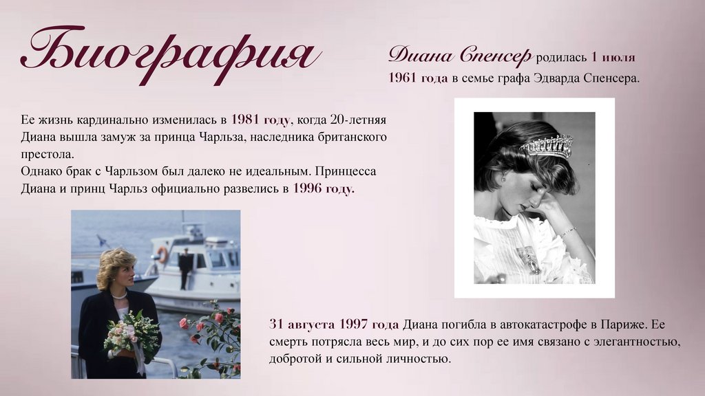 31 августа 1997 года Диана погибла в автокатастрофе в Париже. Ее