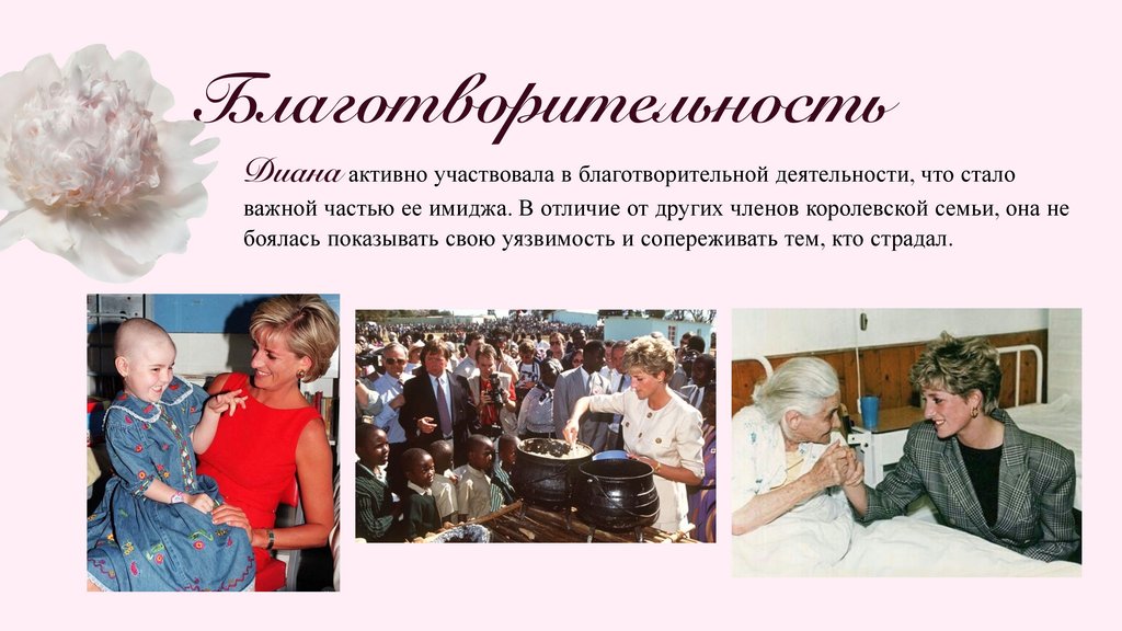 БлаготворительностьДиана активно участвовала в благотворительной деятельности, что стало
