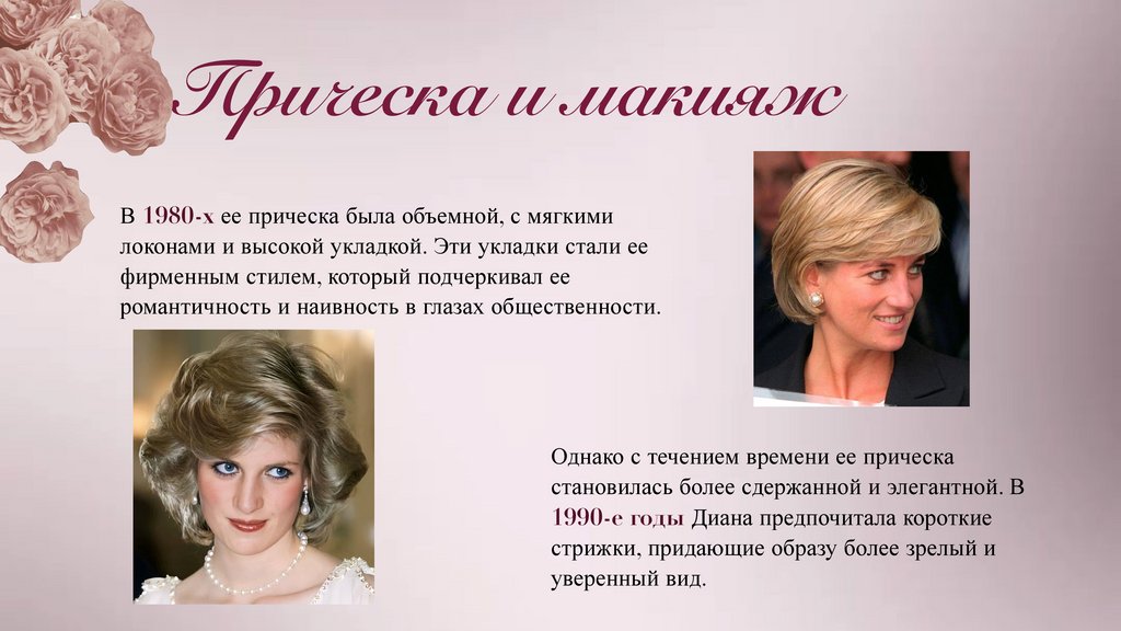 Прическа и макияжВ 1980-х ее прическа была объемной, с мягкими