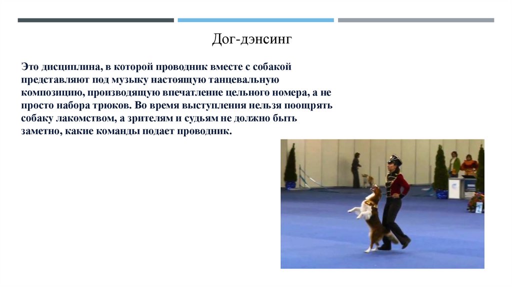 Дог-дэнсингЭто дисциплина, в которой проводник вместе с собакой