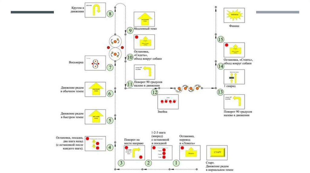 проверяются навыки собаки в выполнении различных команд проводника на послушание