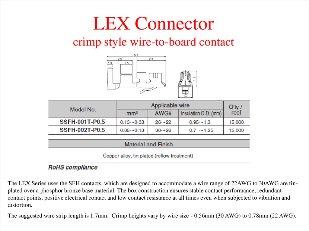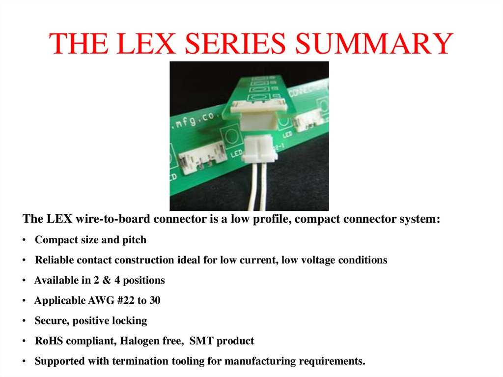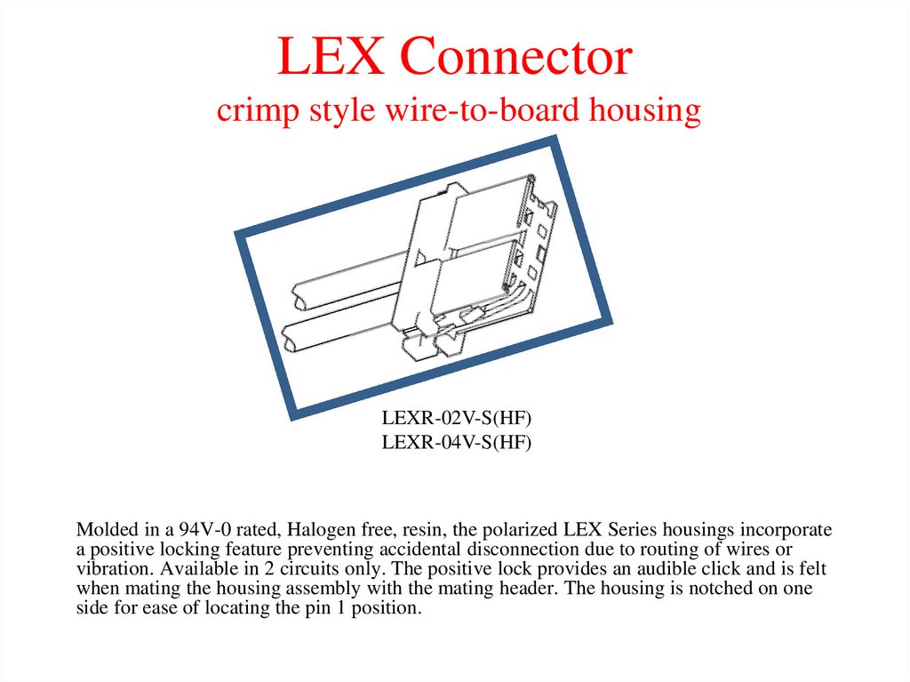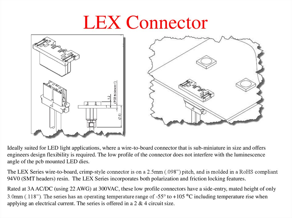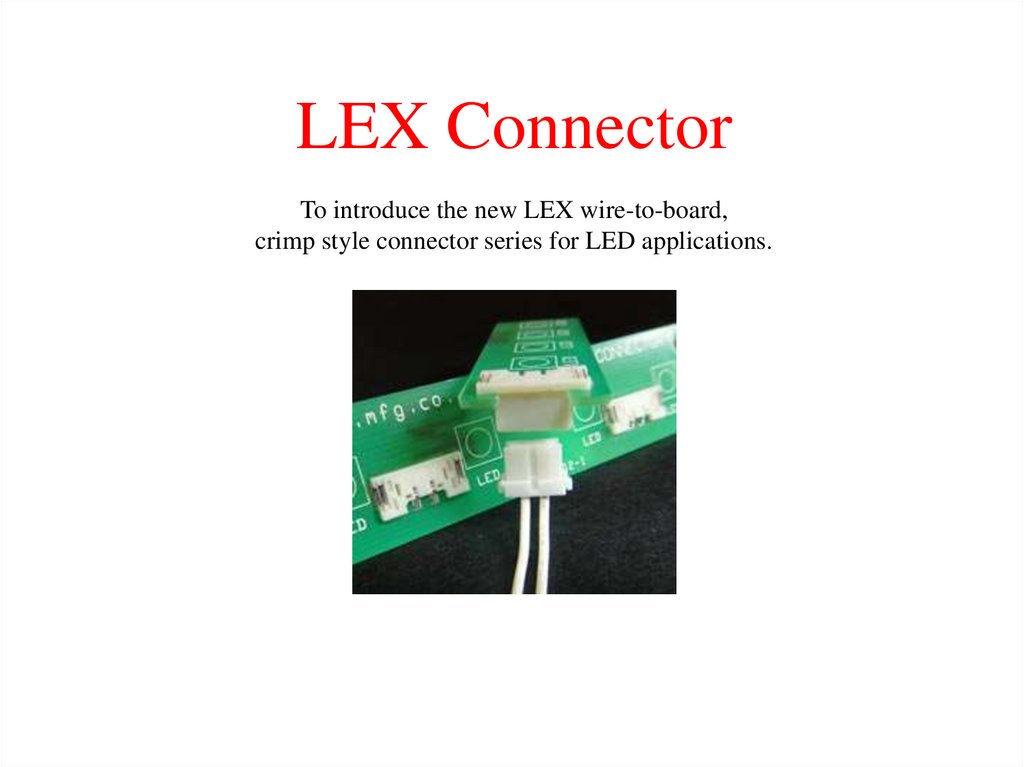 LEX Connector. To introduce the new LEX wire - to - board, crimp style connector series for LED applications