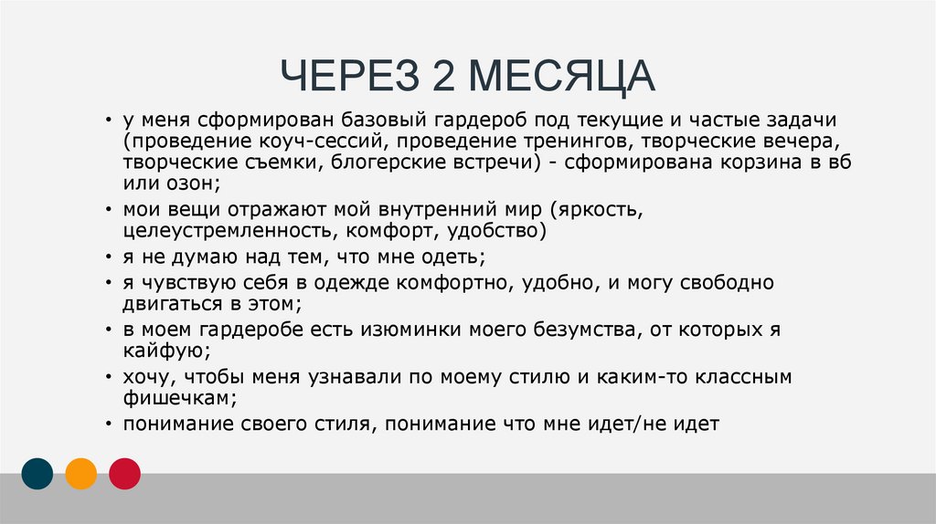 ЧЕРЕЗ 2 МЕСЯЦА• у меня сформирован базовый гардероб под текущие и частые задачи