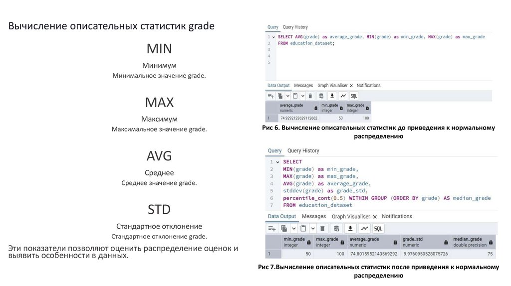 Рис 6. Вычисление описательных статистик до приведения к нормальному