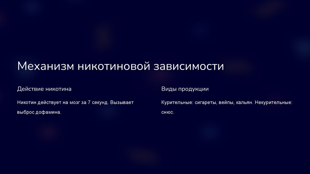 Курительные: сигареты, вейпы, кальян. Некурительные: