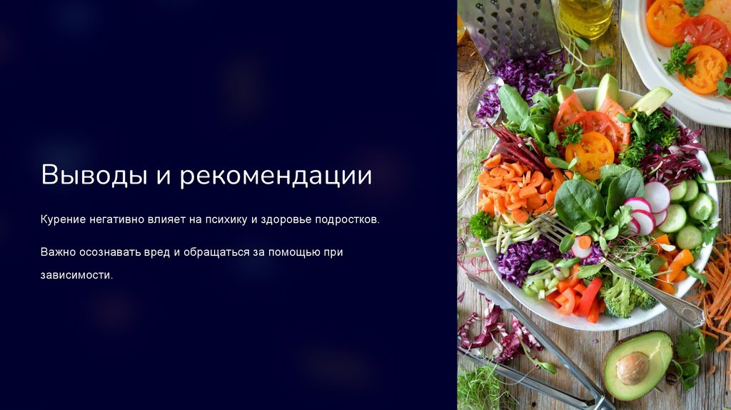Выводы и рекомендацииКурение негативно влияет на психику и здоровье подростков.