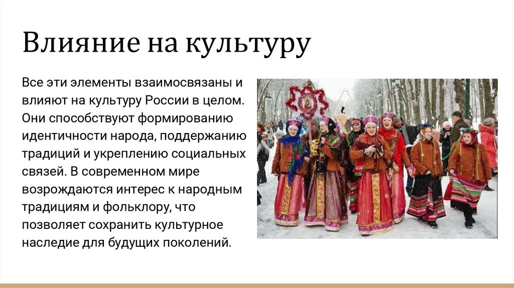 Традиции, обряды, поговорки, песни и их влияние на культуру