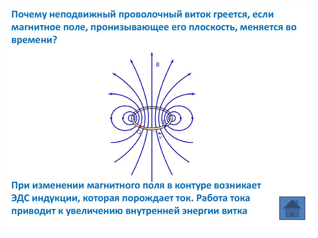 Почему неподвижный проволочный виток греется, еслимагнитное поле, пронизывающее его плоскость, меняется во