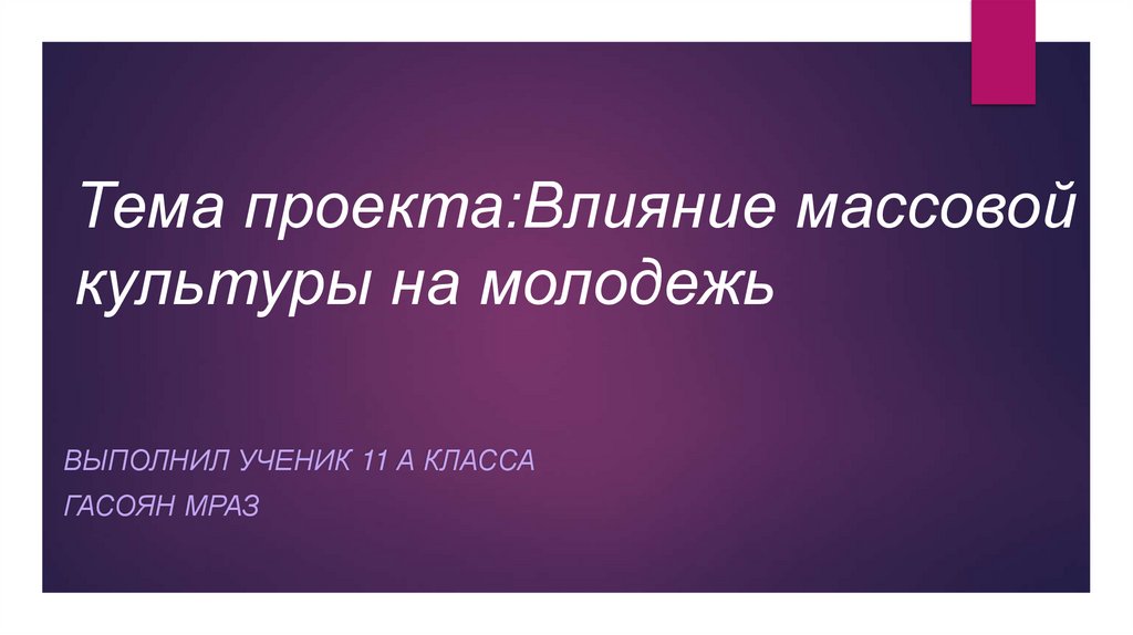 1. Тема проекта:Влияние массовой культуры на молодежь