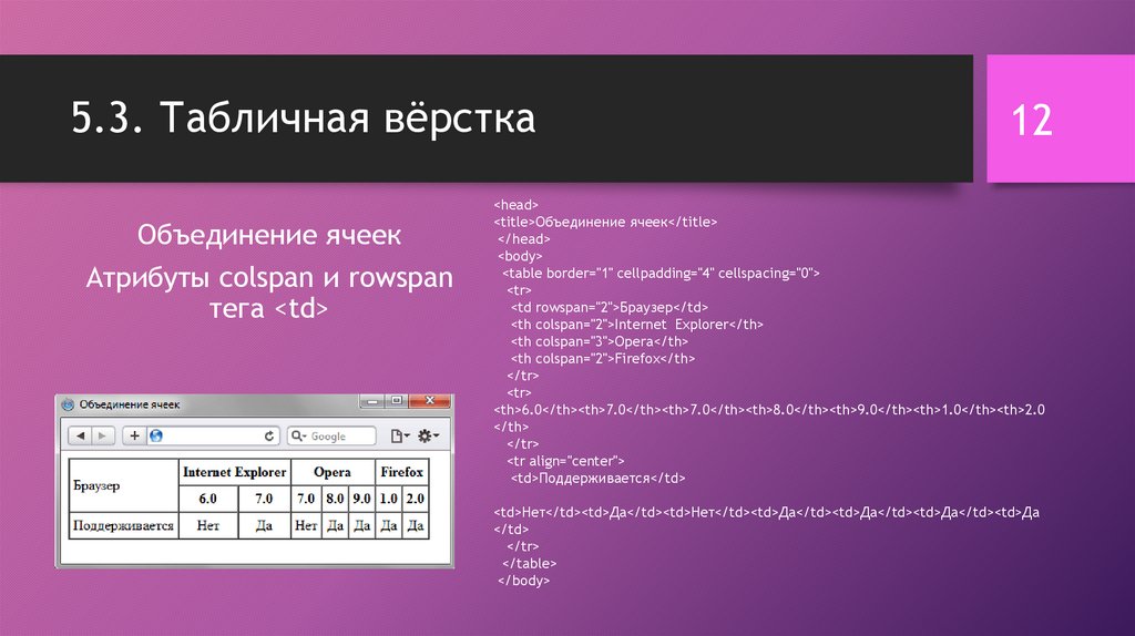 Атрибуты тега <td>1. align. Возможные значения: left —- выравнивание по левому краю,