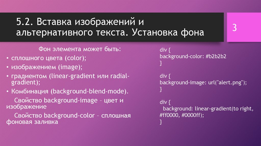3. 5.2. Вставка изображений и альтернативного текста. Установка фона