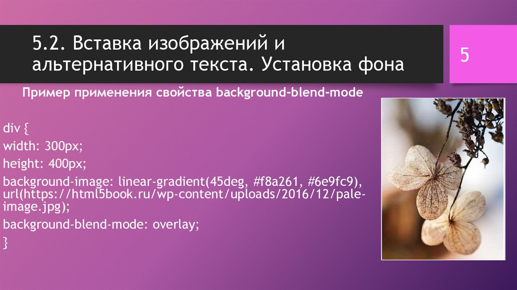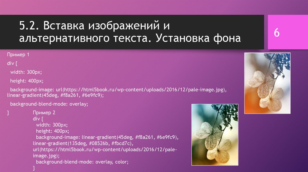 5. 5.2. Вставка изображений и альтернативного текста. Установка фона