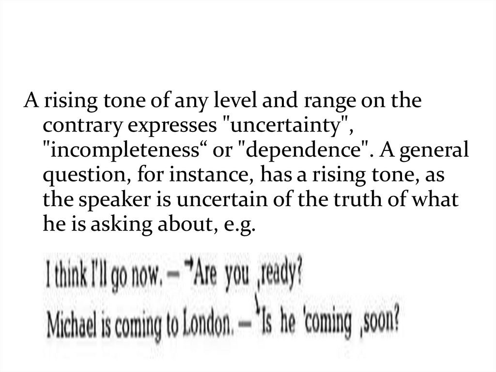 A rising tone of any level and range on thecontrary expresses "uncertainty",