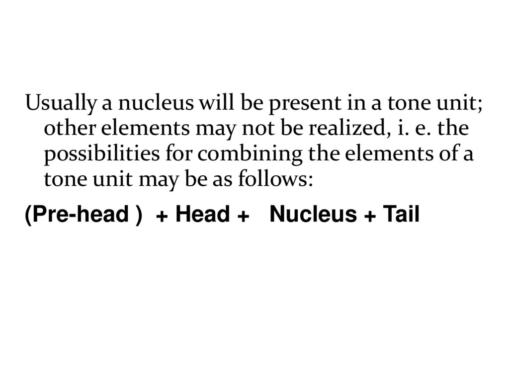 Usually a nucleus will be present in a tone unit;other elements may not be realized, i. e. the