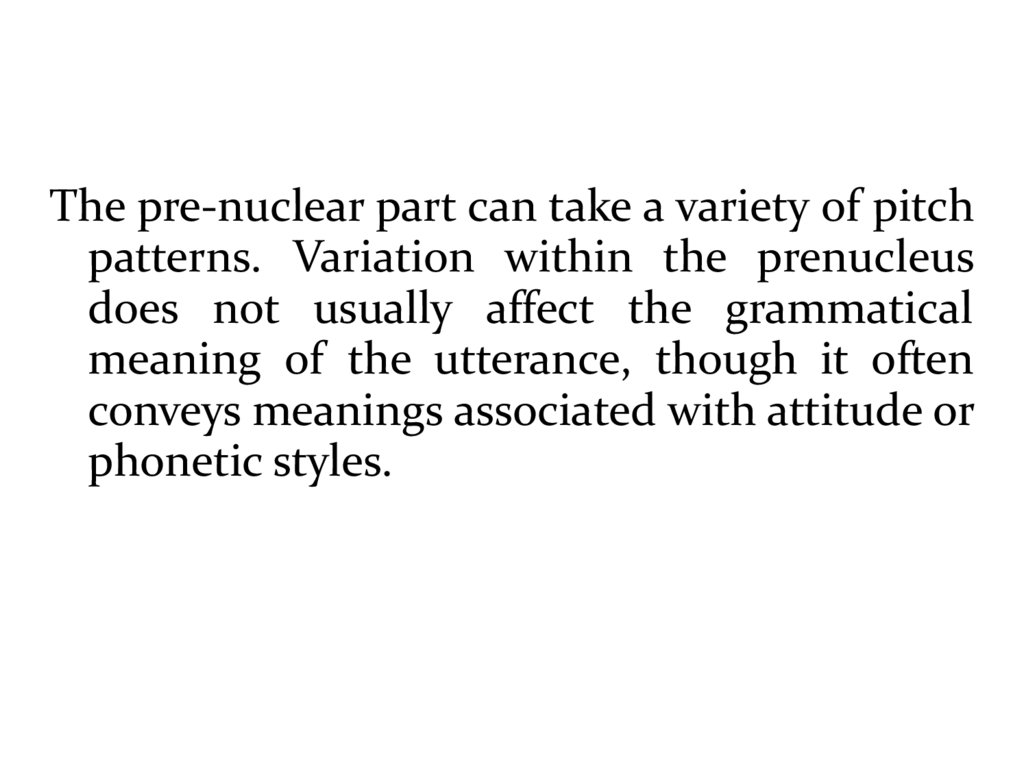The pre-nuclear part can take a variety of pitchpatterns. Variation within the prenucleus