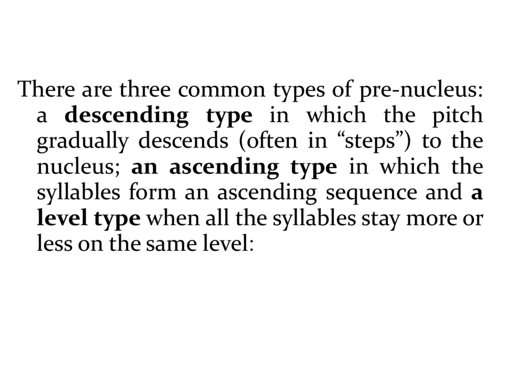 There are three common types of pre-nucleus:a descending type in which the pitch