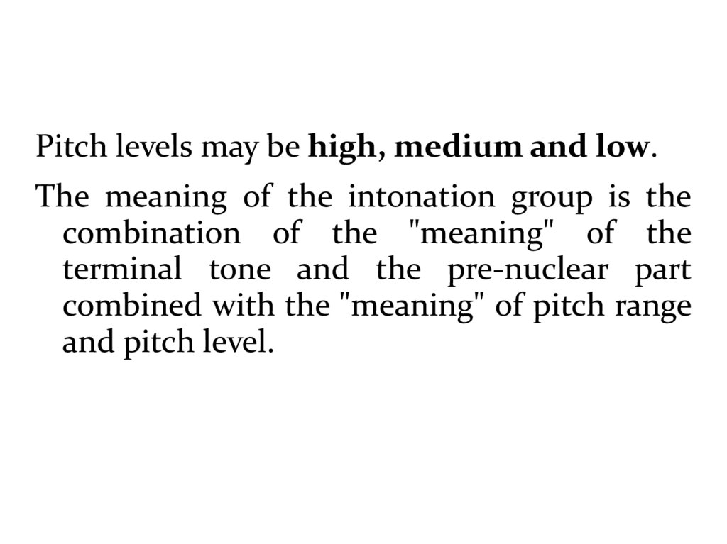 Pitch levels may be high, medium and low.The meaning of the intonation group is the