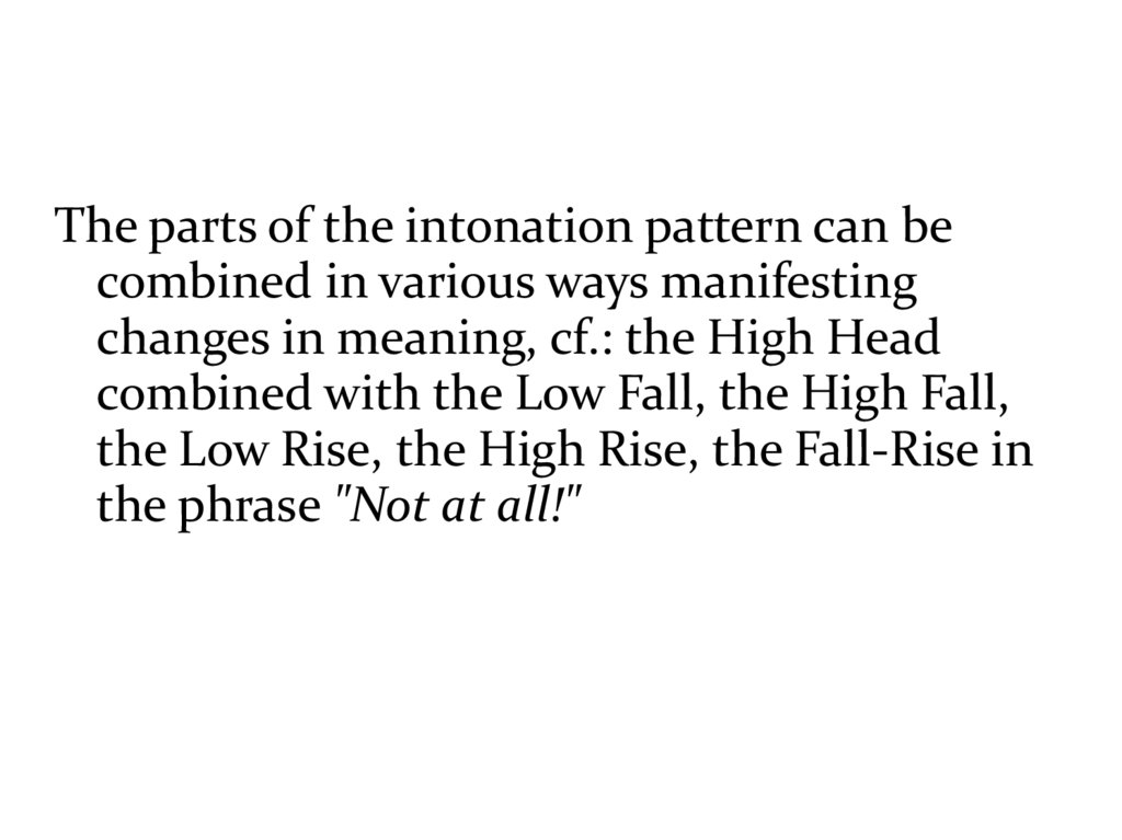 The parts of the intonation pattern can becombined in various ways manifesting
