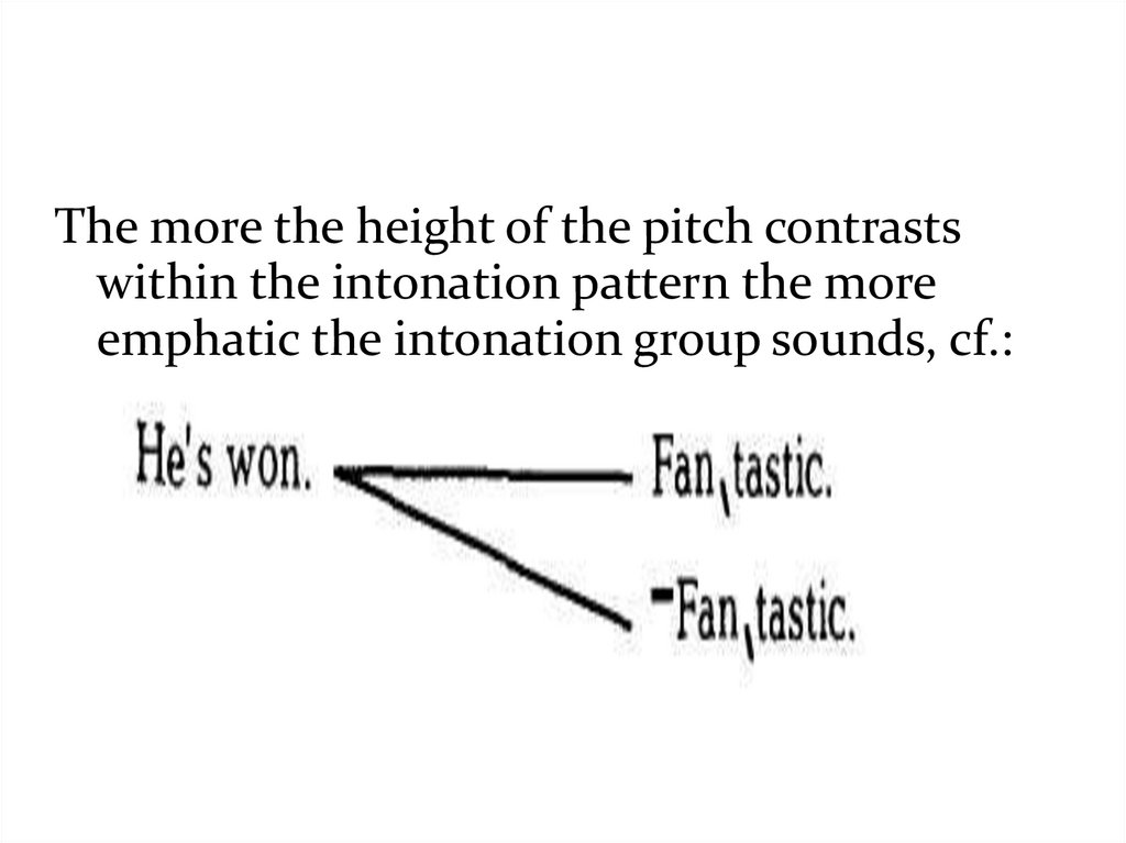 The more the height of the pitch contrastswithin the intonation pattern the more