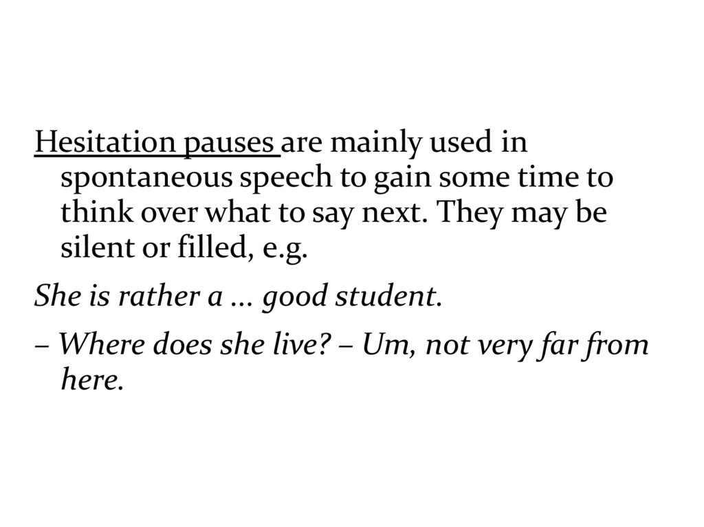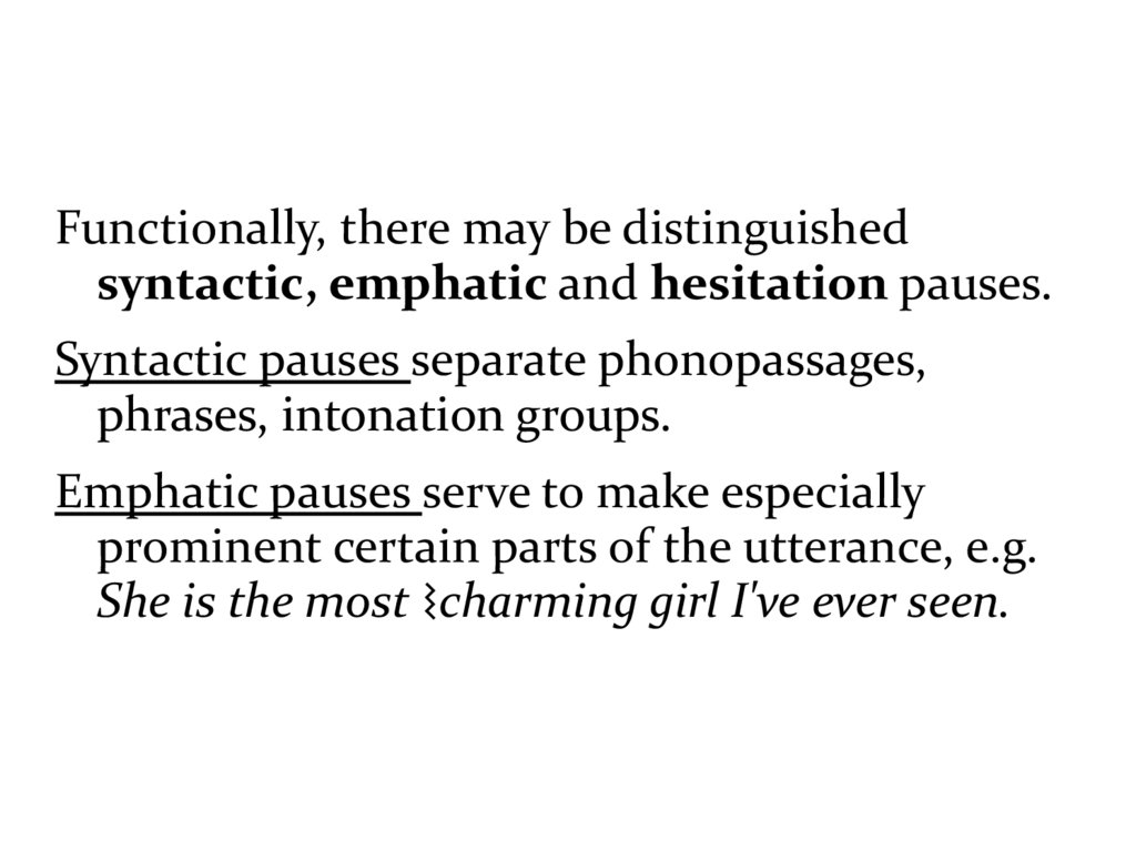 Functionally, there may be distinguishedsyntactic, emphatic and hesitation pauses.