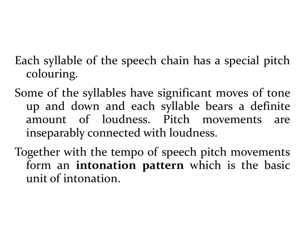 Each syllable of the speech chain has a special pitchcolouring.